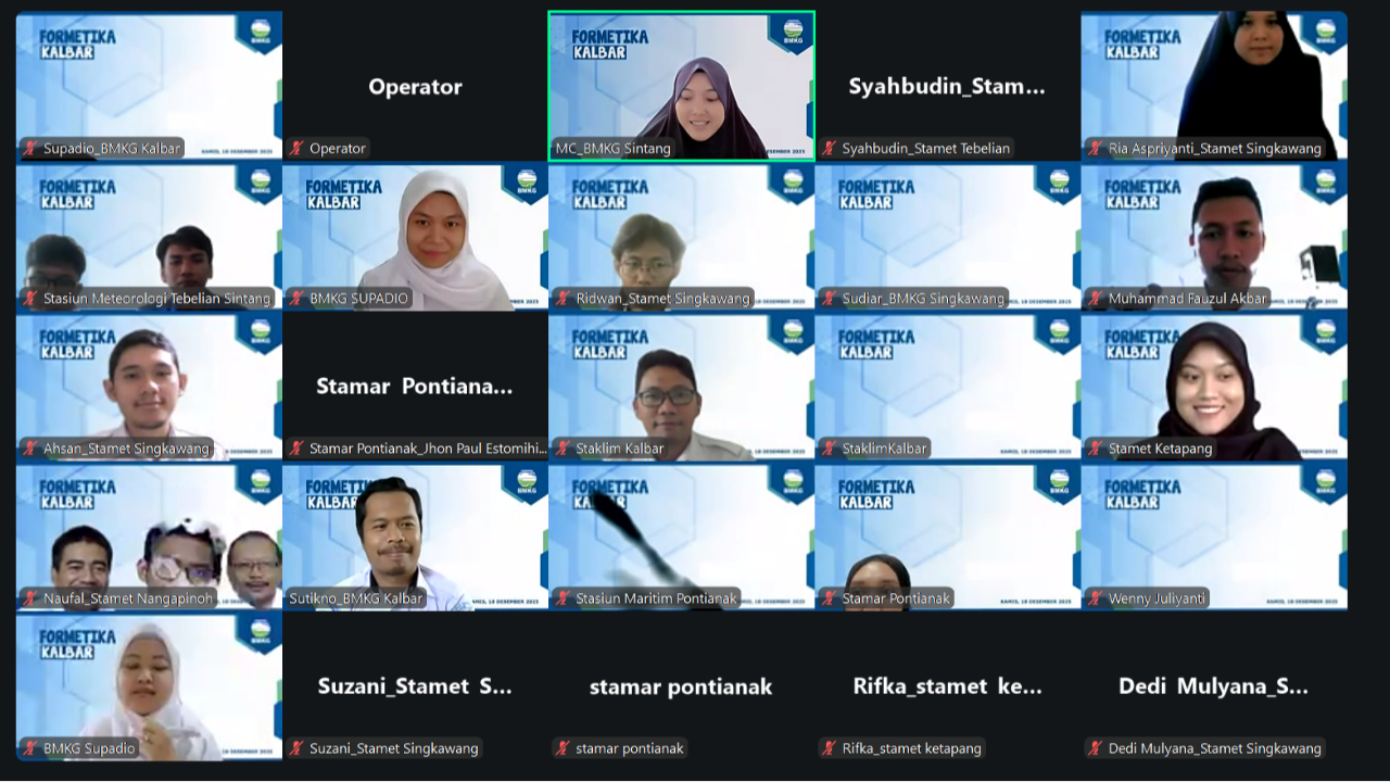 Kamis, 18 Desember 2025 dilaksanakan forum diskusi Meteorologi, Klimatologi, dan Geofisika antar UPT BMKG di wilayah Provinsi Kalimantan Barat secara daring (teleconference). Stasi...